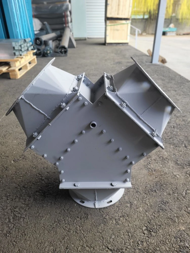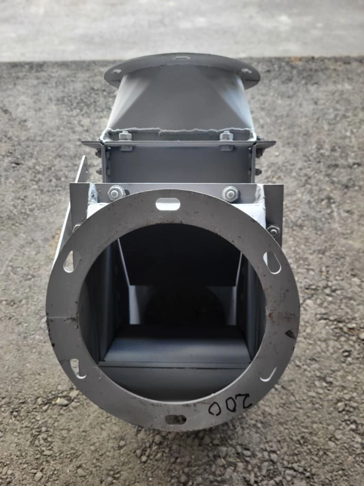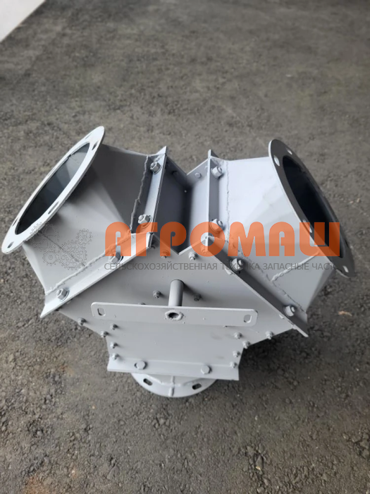 Перекидной клапан (распределитель) с диаметром 200 мм используется для точного управления направлением потока зерна или сыпучих продуктов в технологических системах элеваторов и комбикормовых производств. Такой распределитель обеспечивает надежное переключение между различными участками линии, минимизируя потери материала и предотвращая застревание при транспортировке.
