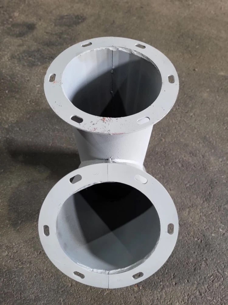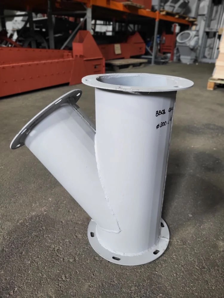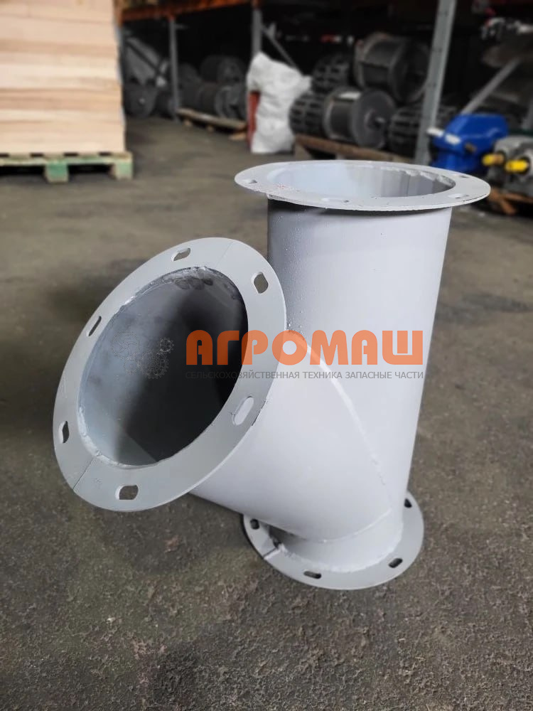 Назначение: ввод односторонний ф200 с углом 45° обеспечивает плавное изменение направления потока зерна в самотёчных системах. Применяется для подключения оборудования, организации поворотов трассы и разветвлений трубопровода без потери производительности.