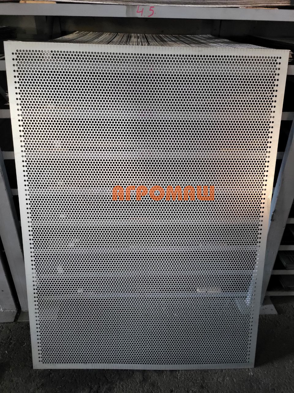 Решето 1а-10,0-750×1000-0,8-оц — крупноячеистое решето с круглыми отверстиями диаметром 10,0 мм, предназначенное для установки в решётный стан зерноочистительной машины БИС-100. Используется на первом этапе очистки для удаления крупных примесей: комков почвы, обломков стеблей, камней, щепок и других посторонних включений размером свыше 10 мм. Толщина оцинкованного стального полотна — 0,8 мм, что обеспечивает необходимую жёсткость при вибрации и устойчивость к механическим нагрузкам даже при засорённом материале. Габариты 750×1000 мм полностью соответствуют штатным размерам БИС-100, исключая необходимость адаптации. Оцинкованное покрытие («оц») защищает поверхность от коррозии при эксплуатации в условиях повышенной влажности и агрессивной пылевой среды, что особенно важно при сезонной работе с влажным зерном или масличными культурами.