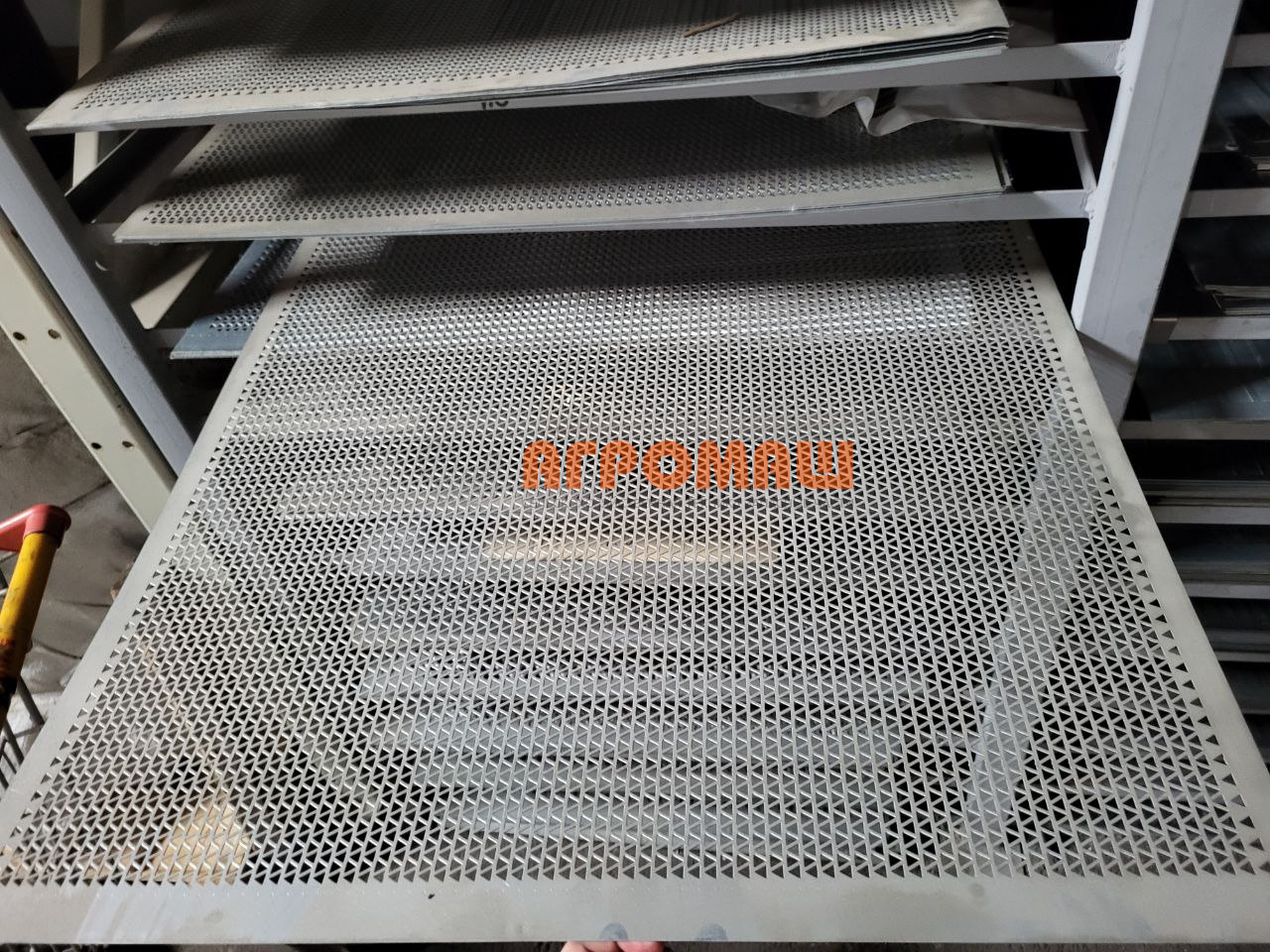 Решето 3а-8,0-990х740-0,8-оц с треугольной перфорацией для первичного отделения массивных плоских примесей - перфорированная сепарирующая пластина с треугольными ячейками стороной 8,0 мм служит для грубой очистки зерновых культур от крупноразмерных плоских включений на начальных ступенях технологического процесса. Габаритные размеры 990×740 мм соответствуют установочным рамкам решётного блока зерноочистительного сепаратора ЗВС-20. Стальная основа толщиной 0,8 мм с цинковым покрытием демонстрирует устойчивость к механическим воздействиям при продолжительной эксплуатации.