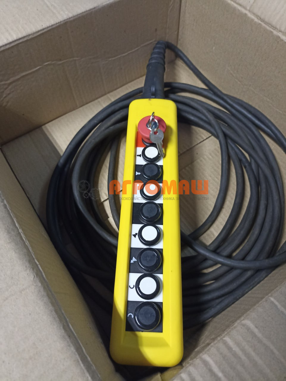 - Удлинённый кабель 8 м — позволяет оператору контролировать процесс погрузки с безопасного расстояния и удобной позиции.